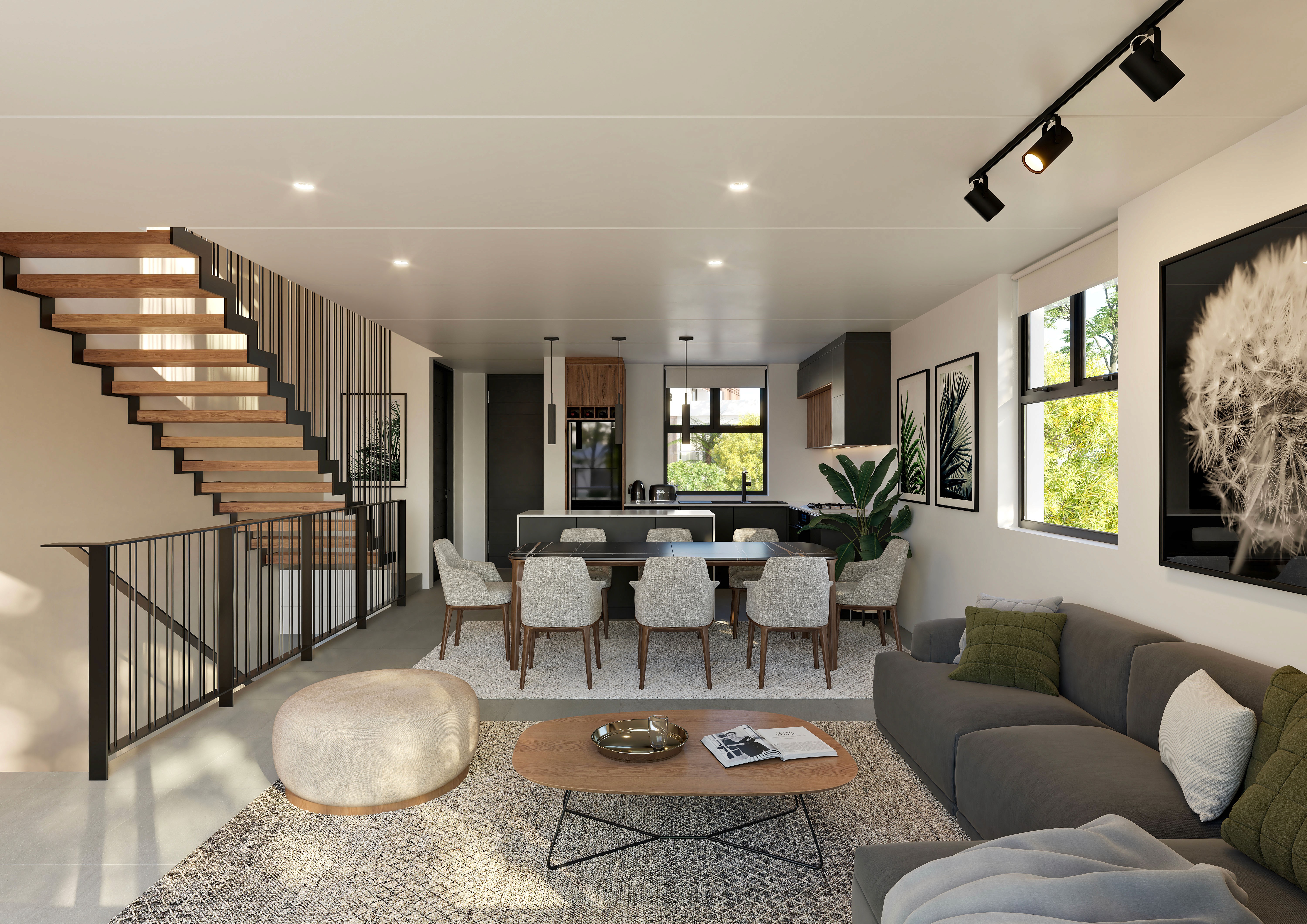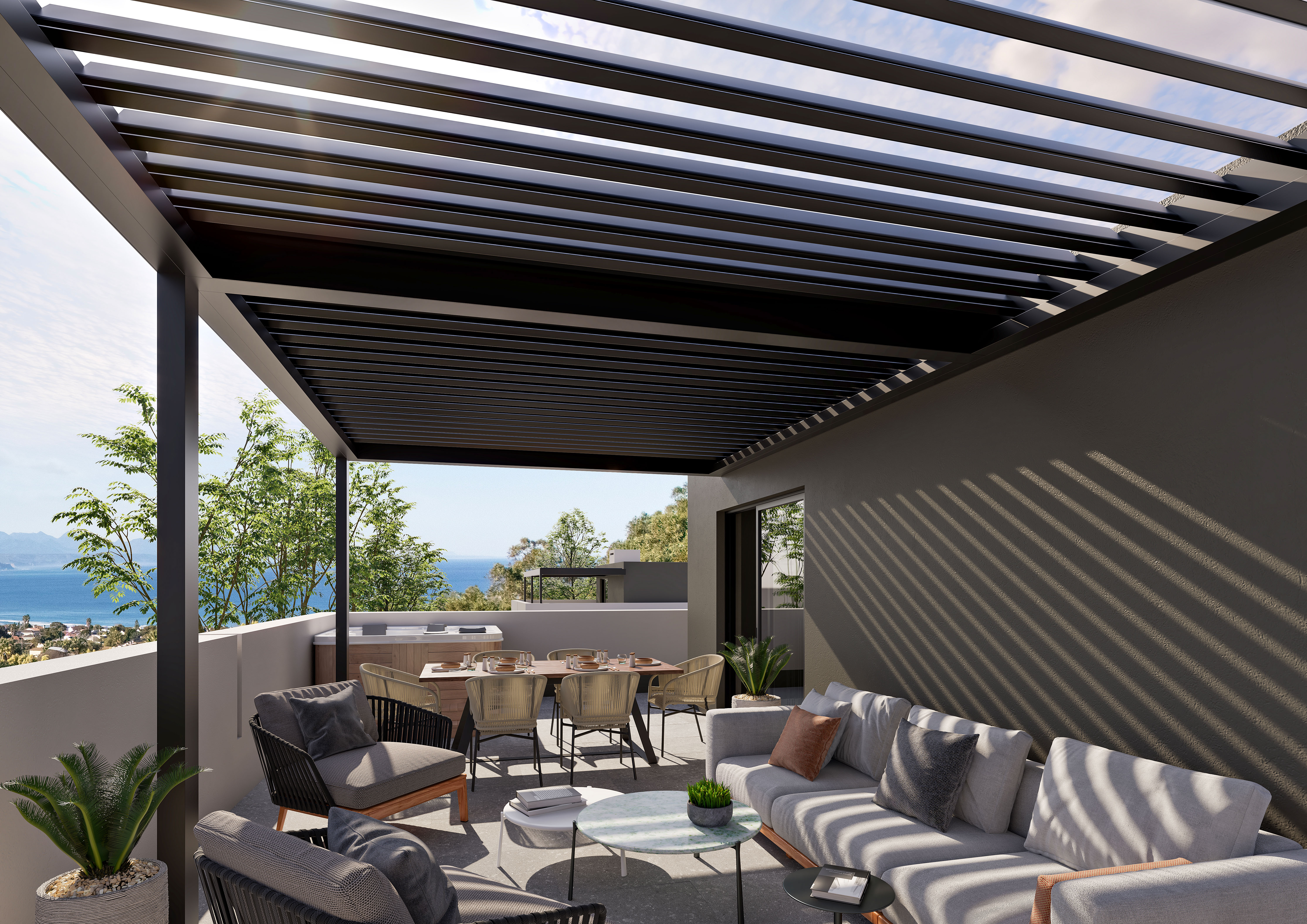 The villas combine contemporary architecture with natural accents of timber and stone, giving each home a sense of warmth and connection to its surroundings.